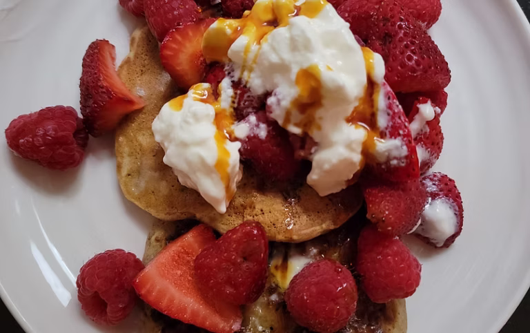 Using a large serving spoon, put one serving spoon of batter onto a medium heated griddle or a frying pan. When bubbles begin to form in each pancake, flip and cook the other side of each pancake. Check for doneness by peaking under each…2 minutes or so will do. Then remove and stack in a serving bowl.